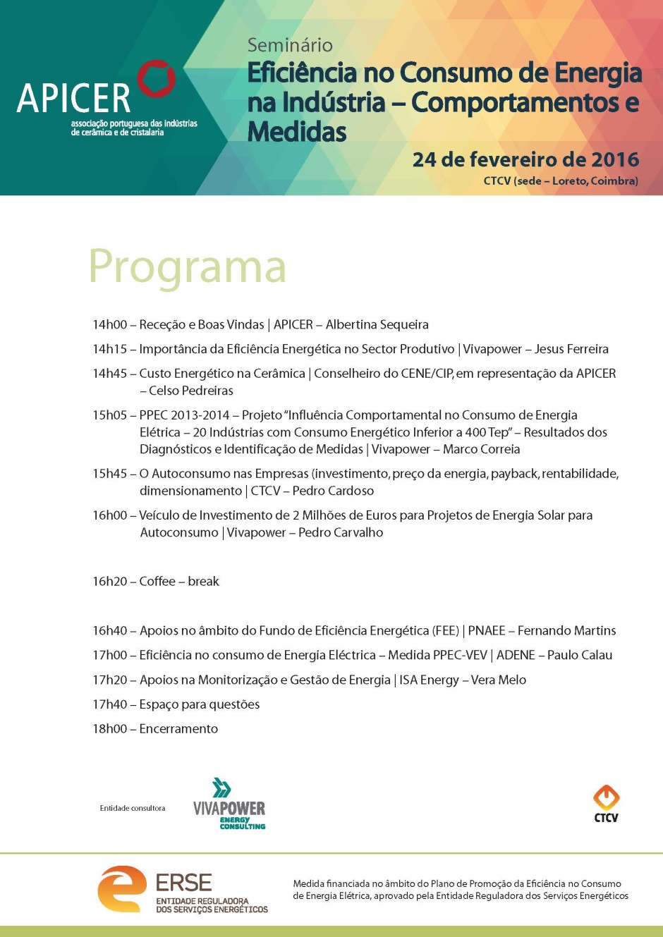 A Vivapower marcará presença no Seminário “Eficiência Energética no Consumo na Indústria Cerâmica e do Vidro”, onde apresentará a disponibilidade de investimento de 2 Milhões de Euros para projectos de Autoconsumo e Eficiência Energética.